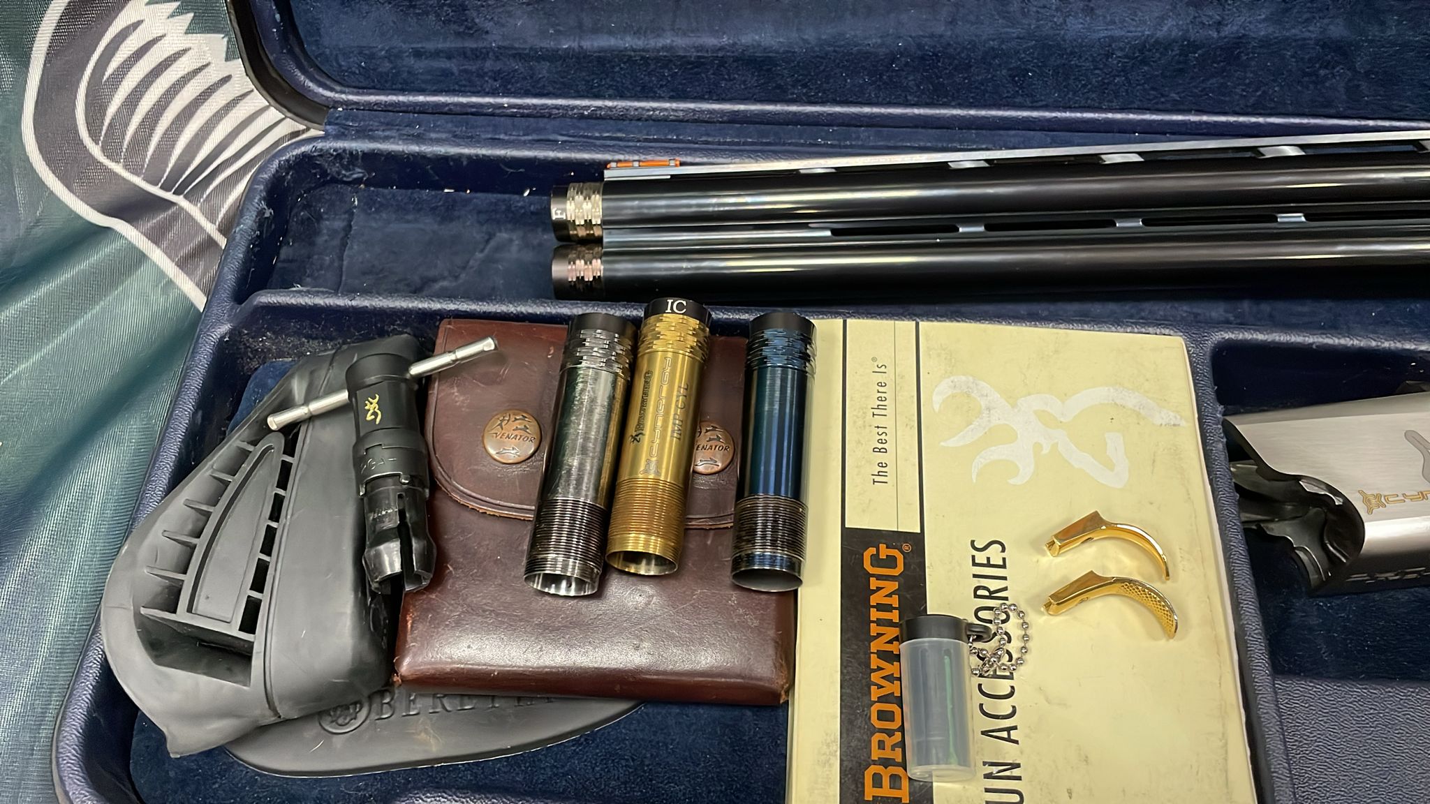 La escopeta browning cynergy cal 12 con cañón de 71 cm incluye choques, gatillo ajustable, cantoneras, miras intercambiables y maletín. Revisada y con garantía.