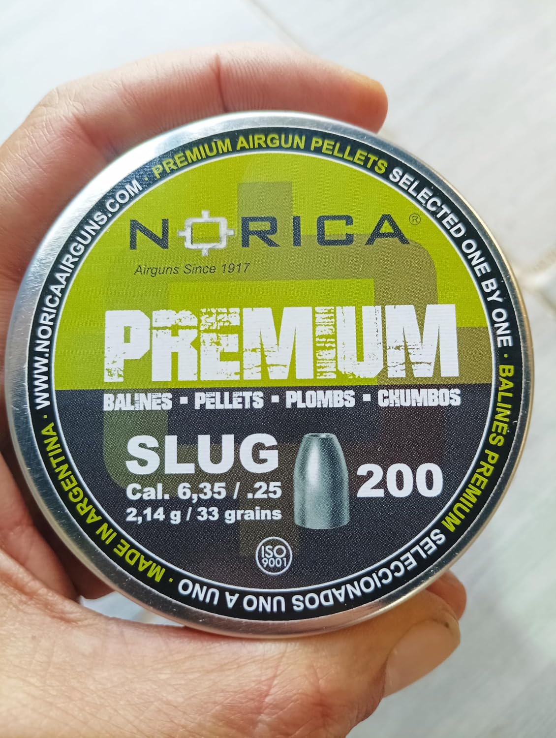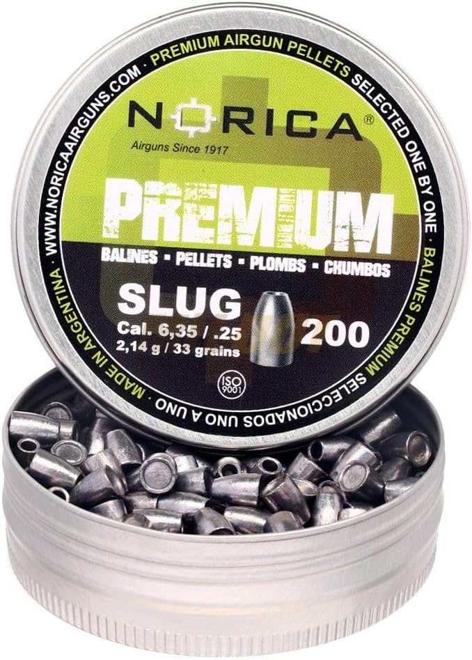 Los plomos norica premium slug cal. 6,35 mm están diseñados para ofrecer un alto rendimiento en disparos de precisión a media y larga distancia. Gracias a su mayor peso y su diseño de punta redondeada, proporcionan una excelente estabilidad en vuelo y una gran capacidad de impacto.