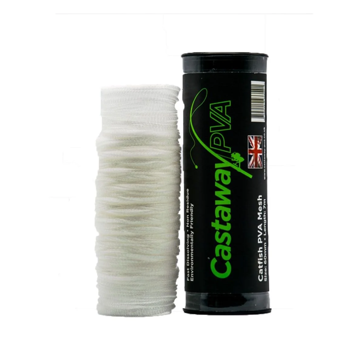 El tubo malla PVA Casfish 60mm x 7mts Castaway está diseñado para pescadores exigentes que buscan precisión y efectividad en sus cebados. Originalmente desarrollado para la pesca del siluro, este sistema PVA también es muy utilizado por pescadores de carpas en canales, ríos o zonas donde el uso del cohete de cebo está restringido.