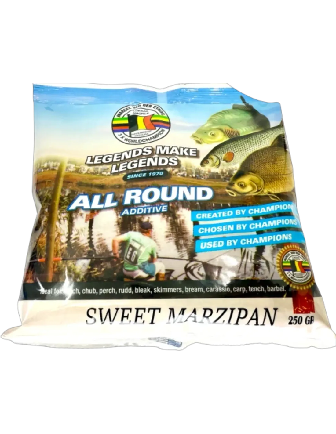 El aditivo Marcel Van Den Eynde Sweet Marzipan es un potenciador en polvo para engodos, muy apreciado por su versatilidad y eficacia. Su aroma dulce a mazapán refuerza el poder de atracción del cebo, permitiendo adaptarlo a diferentes condiciones de pesca y preferencias personales.