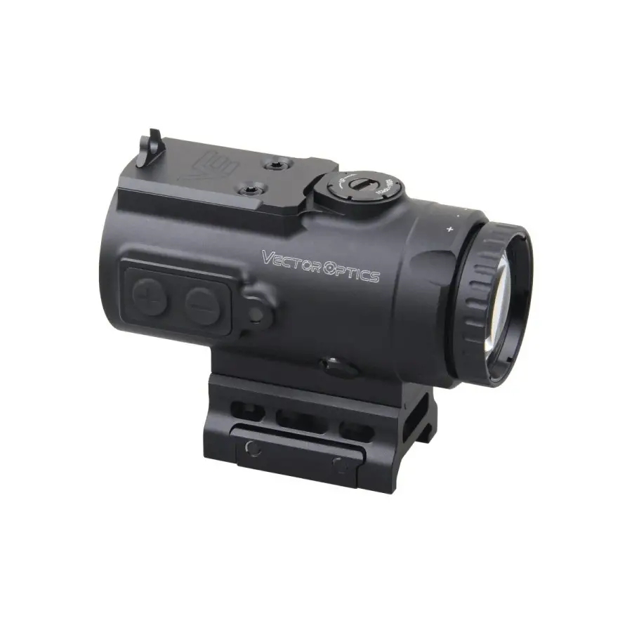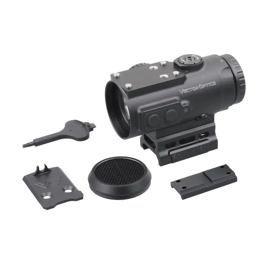 Fabricado en aluminio 6061-T6, este visor es resistente a golpes, agua (IP67) y niebla gracias a su sellado con nitrógeno. Su diseño compacto y ligero lo convierte en una opción ideal para configuraciones CQB, incorporando además una plataforma superior compatible con huella MAG para añadir accesorios.